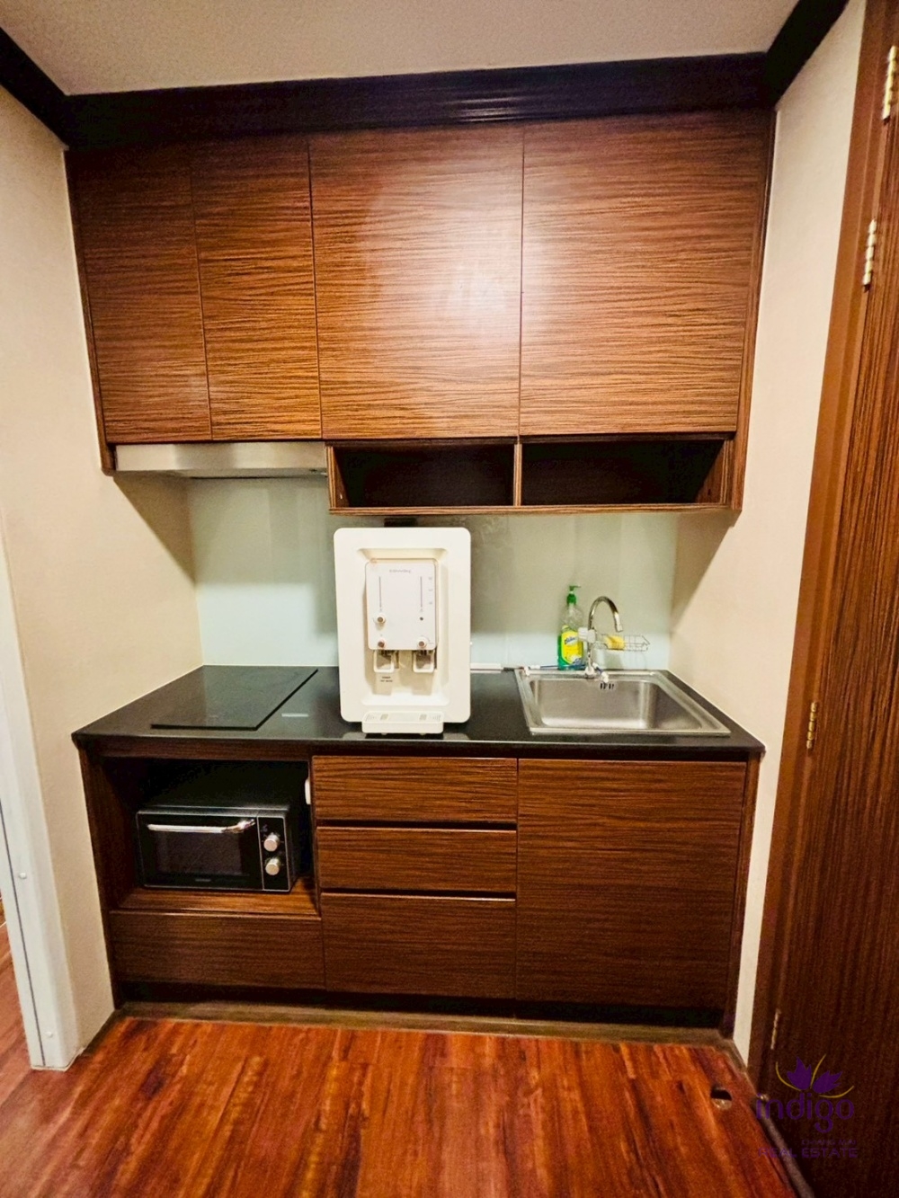 - Kitchen: Beautiful Western-style kitchen with ample storage, equipped with an electric stove, exhaust hood, and a large refrigerator.