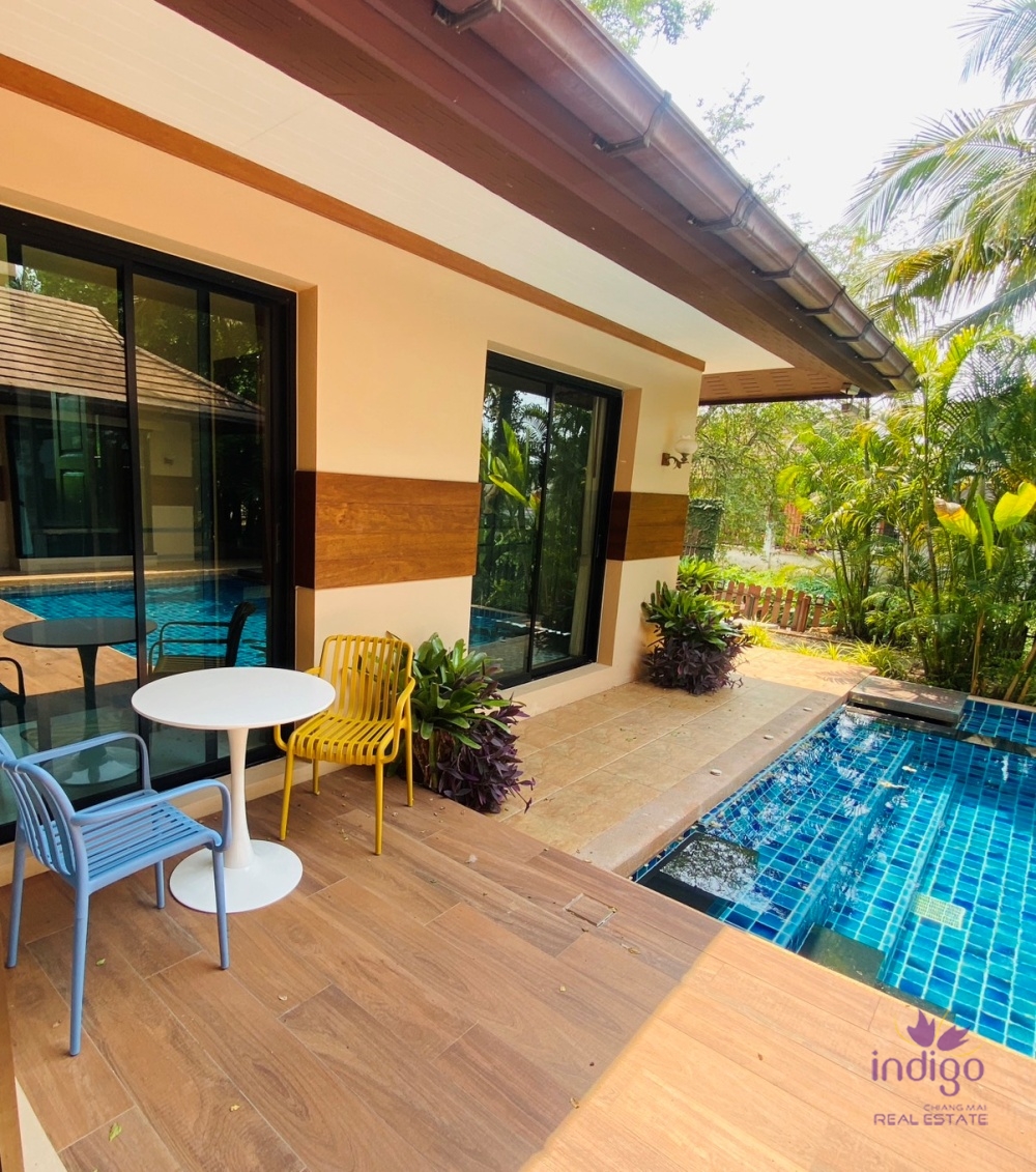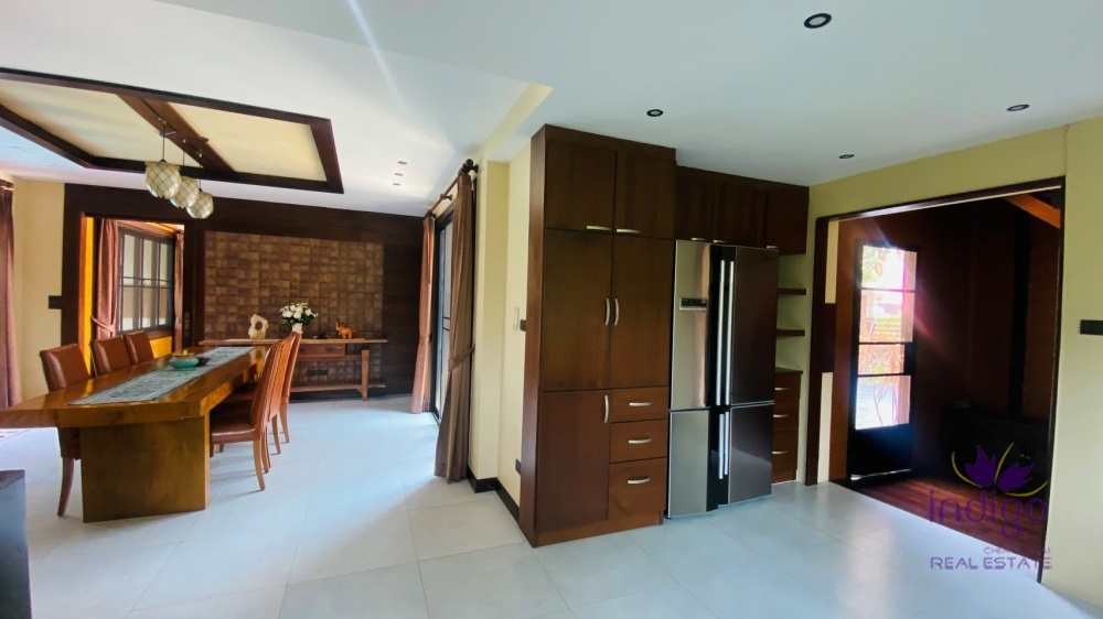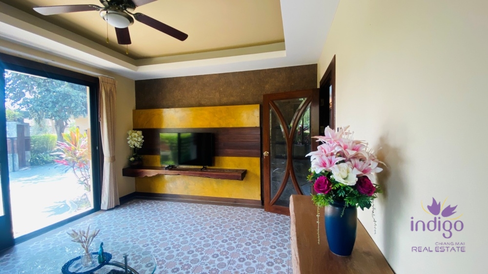 For Sale: Elegant well-maintained contemporary Lanna style home with private pool is beautifully designed in the sought after Moo Baan Rim Nam, Chiang Mai. The house is in a great location just down the road from Meechok Plaza.