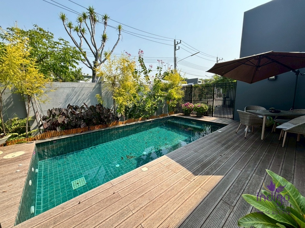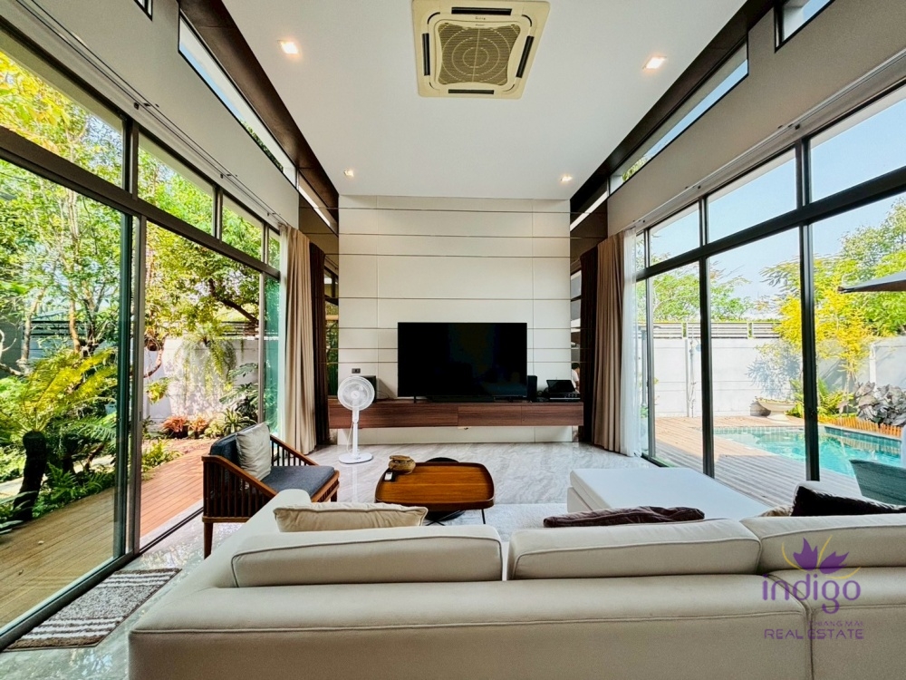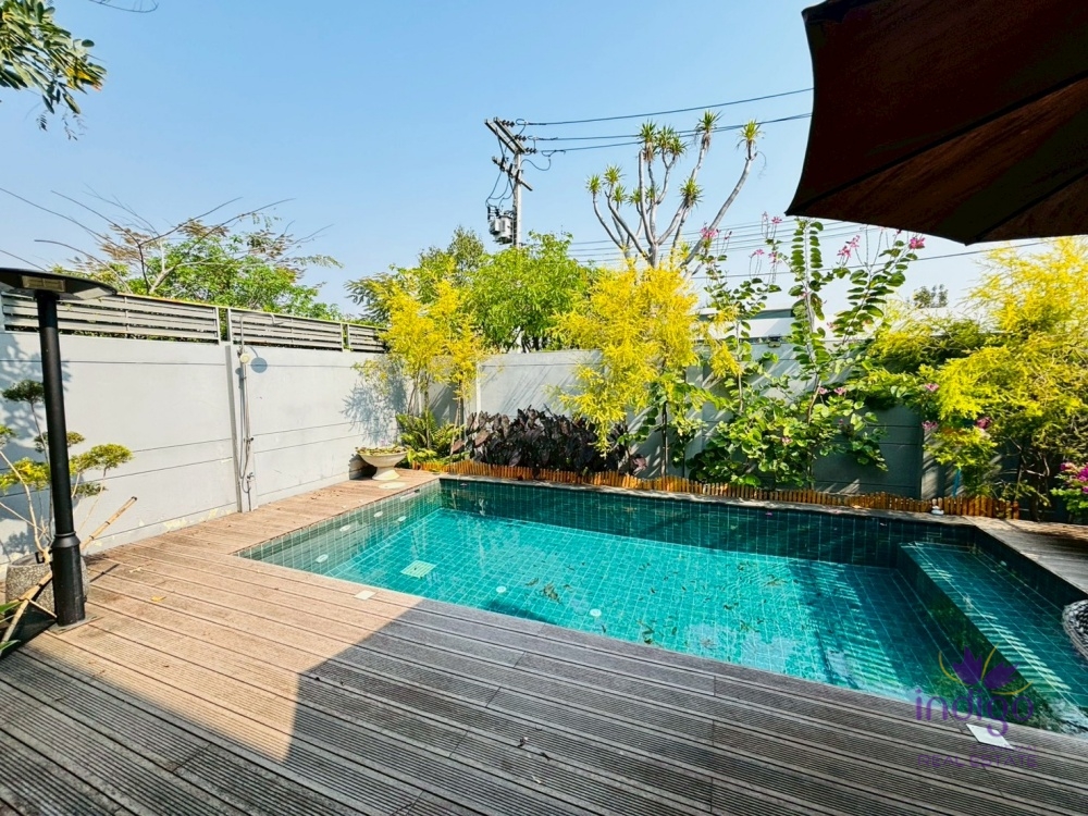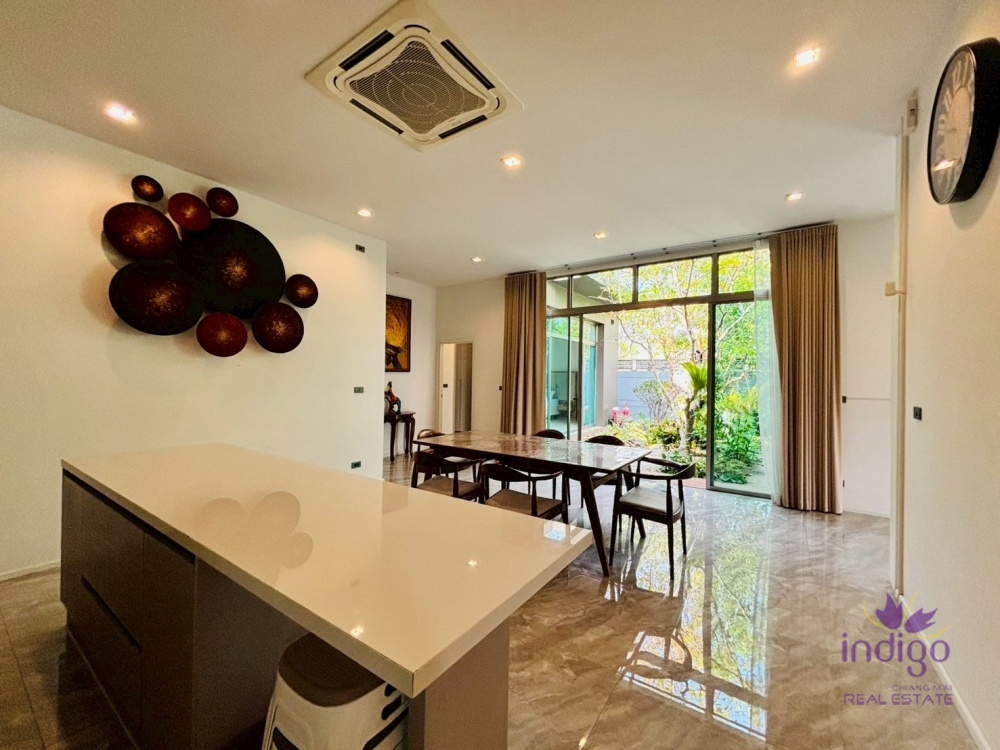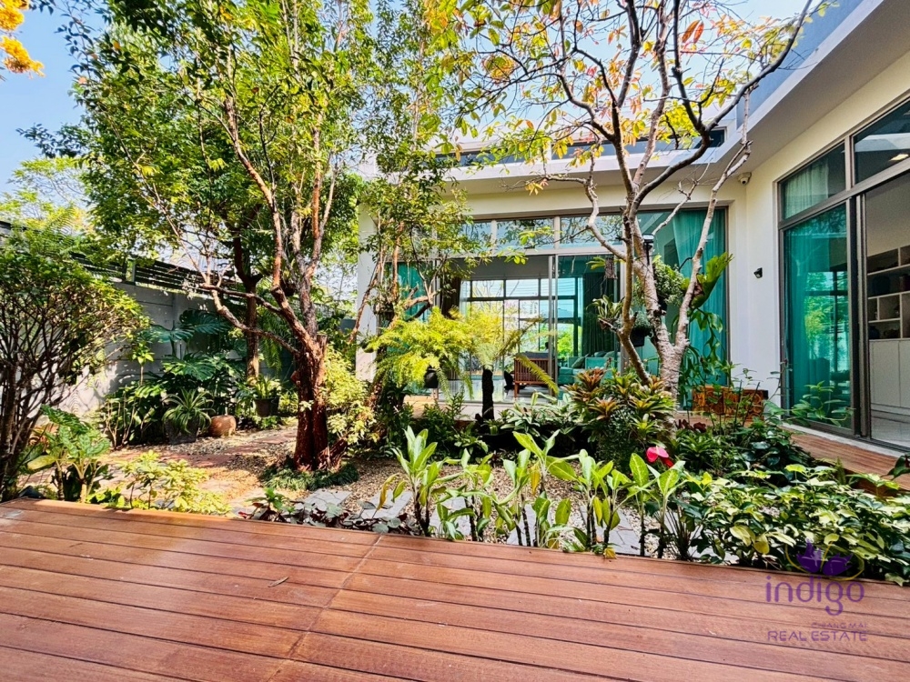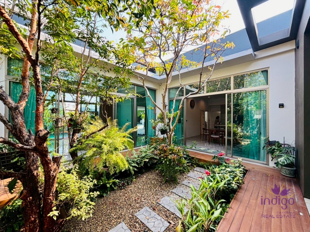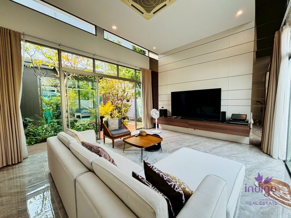Experience the perfect blend of modern luxury and tropical serenity at Moo Baan Rochalia, one of Hang Dong’s most sought-after residential communities. This stunning, light-filled 3-bedroom pool villa is designed with an "inside-out" concept, centering around a lush private courtyard that brings nature into every corner of your home.