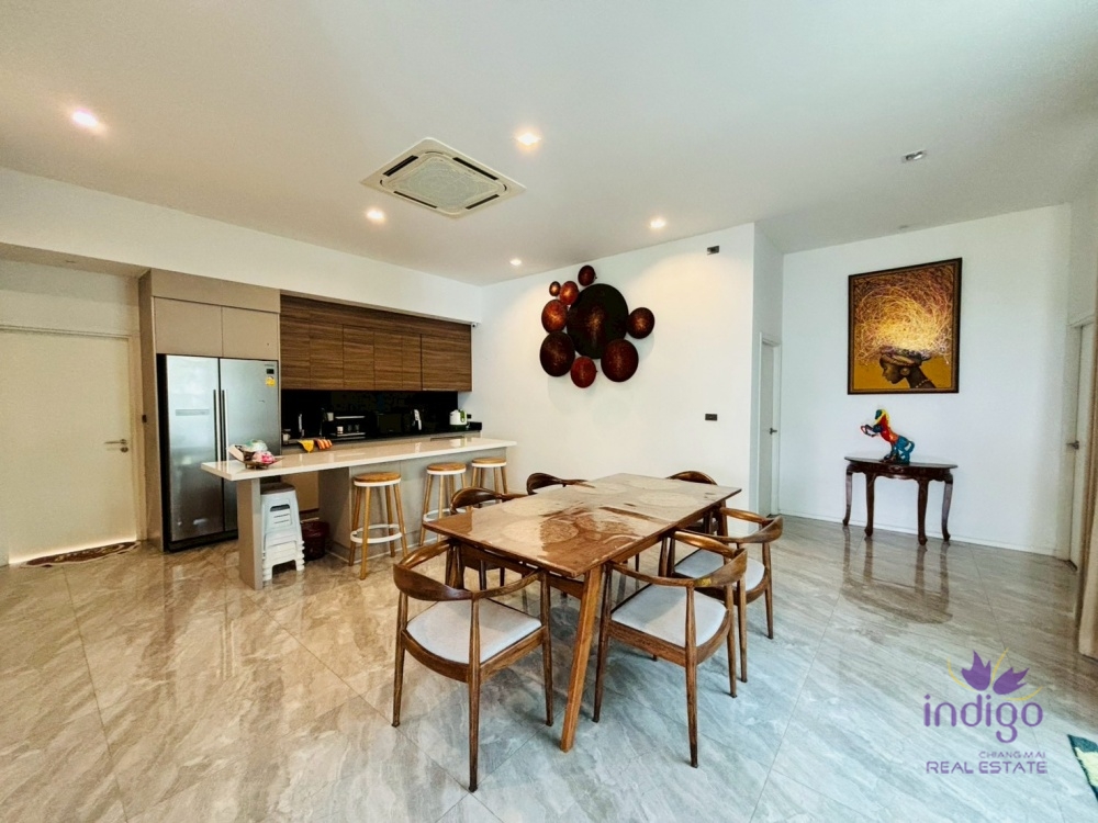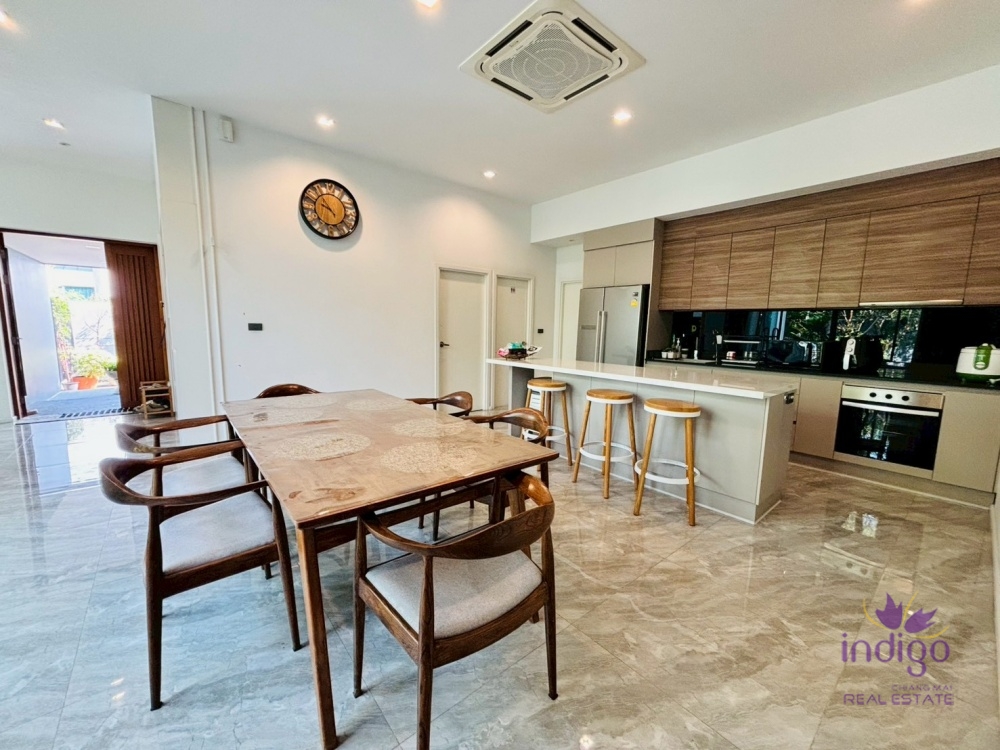 Gourmet Kitchen & Dining: Host with ease in the spacious dining area featuring a modern Western kitchen with a large island bar. For heavy cooking, a dedicated Thai kitchen/utility area is conveniently located at the rear.