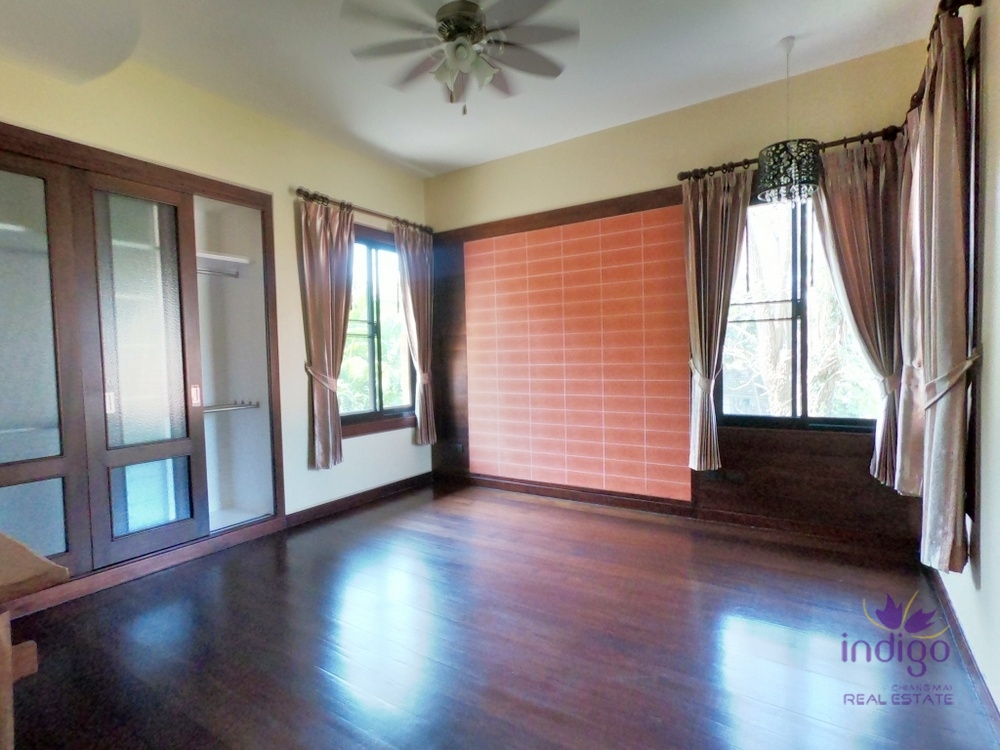 For Rent: Elegant well-maintained contemporary Lanna style home with private pool is beautifully designed in the sought after Moo Baan Rim Nam, Chiang Mai. The house is in a great location just down the road from Meechok Plaza.