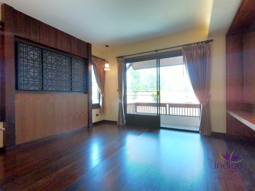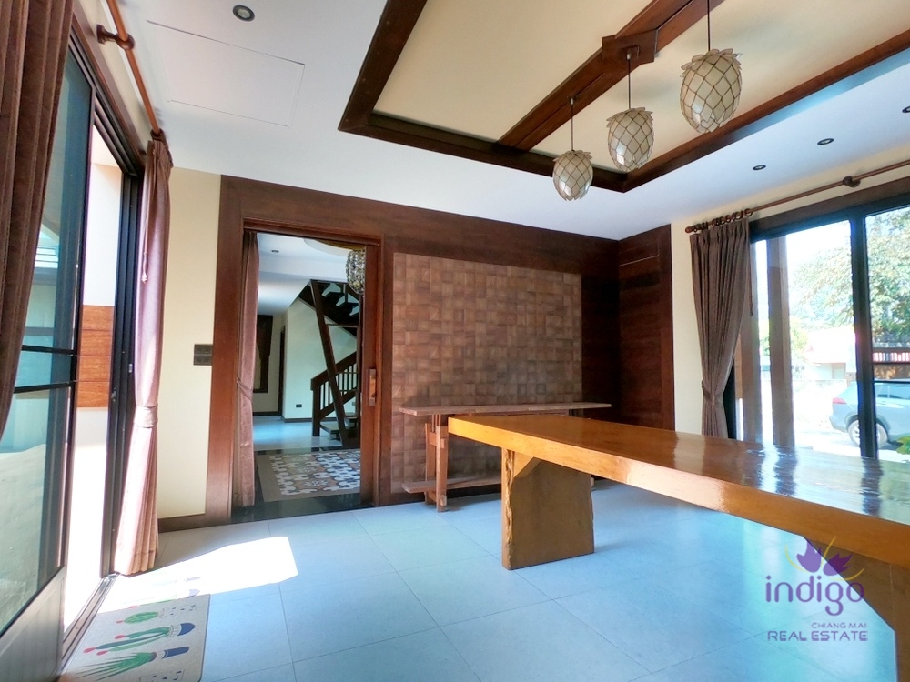 For Sale: Elegant well-maintained contemporary Lanna style home with private pool is beautifully designed in the sought after Moo Baan Rim Nam, Chiang Mai. The house is in a great location just down the road from Meechok Plaza.